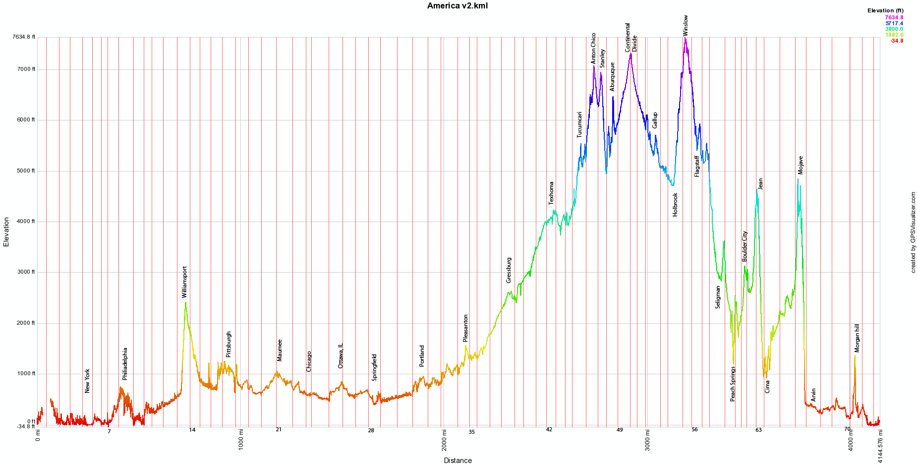 I have created an elevation graph for the trip.